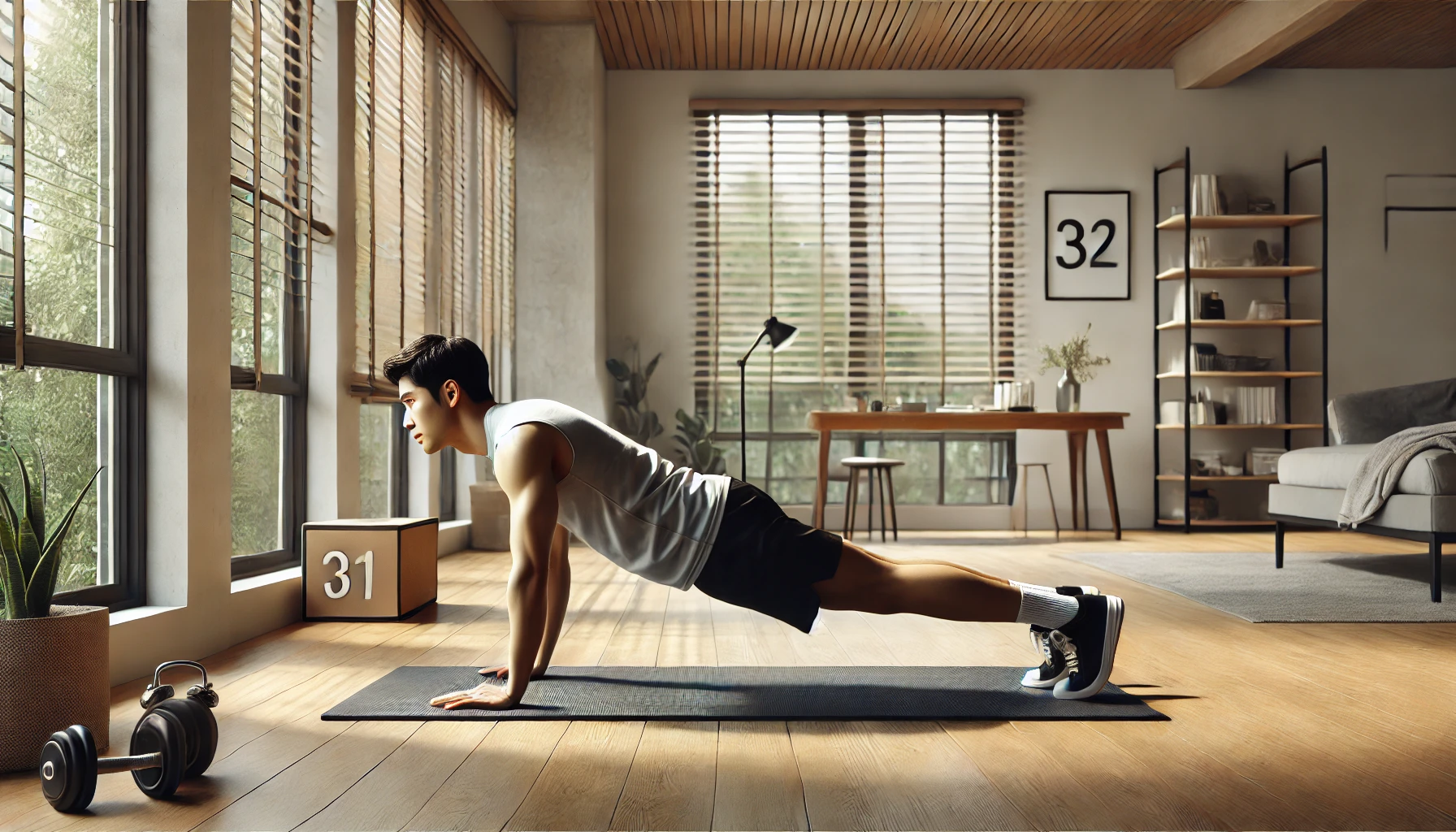 스쿼트, 푸쉬업, 플랭크 같은 기초 운동부터 시작하는 것이 좋습니다.