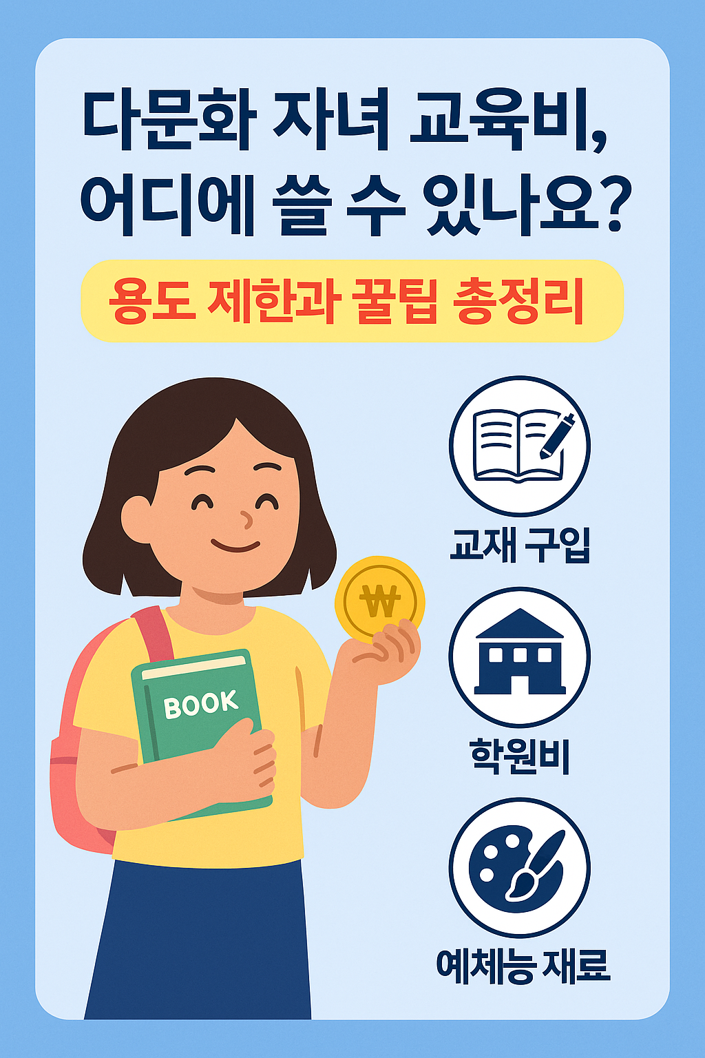 2025년 다문화가족 자녀 교육활동비 지원사업은 자녀의 학습 및 진로 역량 강화를 위해 다양한 교육활동에 사용할 수 있도록 설계되었습니다. 하지만 사용 가능한 항목과 제한 사항을 명확히 이해해야 지원금을 효과적으로 활용할 수 있습니다.