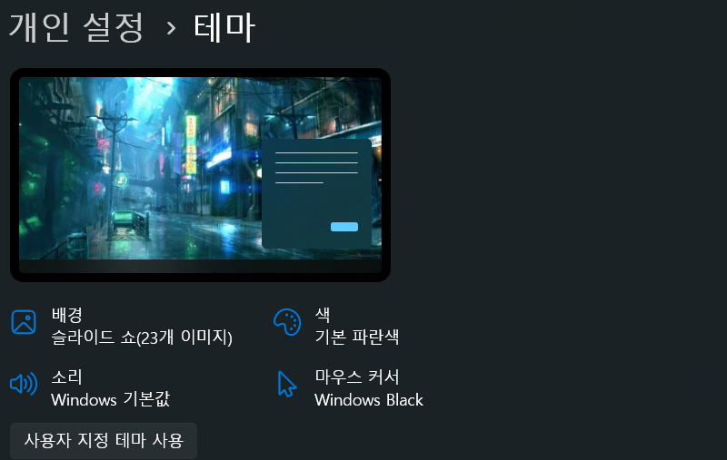 10. "사용자 지정 테마 사용" 을 클릭해 줍니다.