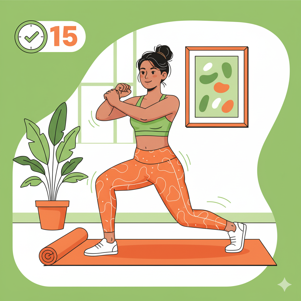 - 옆구리 스트레칭: 한 팔을 머리 위로 뻗어 반대쪽으로 기울여 옆구리를 늘려줍니다.