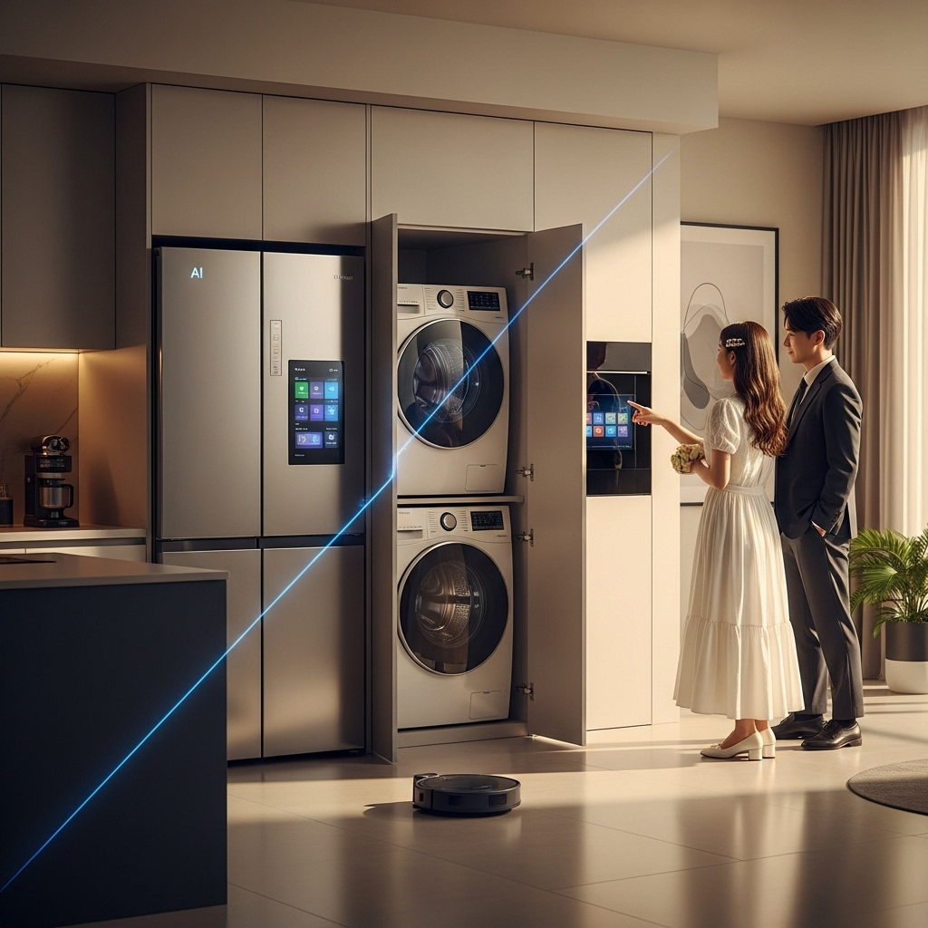 스마트 리빙 패키지 AI 냉장고, 스마트 세탁기, 로봇청소기 등 편리하고 스마트한 신혼 생활 구현, 최신 기술 경험