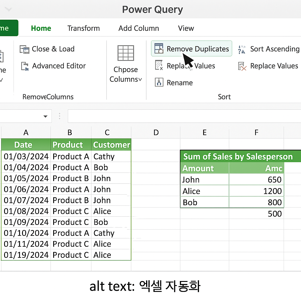 Power Query는 외부 데이터 가져오기, 열 정리, 중복 제거 등에 최적화된 도구입니다.