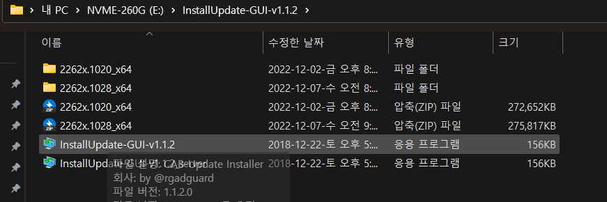 있는 InstallUpdate-Gui-v1.1.2.zip 툴 사용방법입니다.