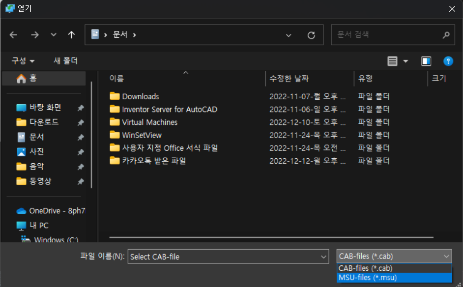1) [Browse..] 버튼을 눌러서 파일종류 에서 cab 파일이나 msu 파일의 위치를 지정해줍니다.