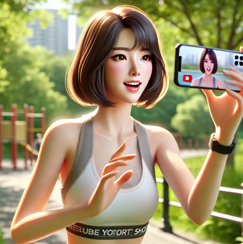 ▲ 야외 공원에서 운동 관련 콘텐츠를 촬영하는 크리에이터