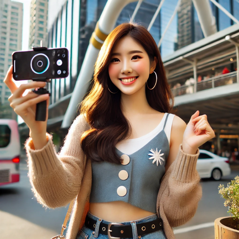 ▲ 크리에이터가 바쁜 도심 속에서 트렌디한 쇼츠 콘텐츠를 제작하는 모습