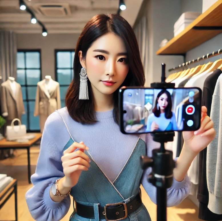 ▲ 패션 매장에서 옷을 입어 보며 유튜브 쇼츠 콘텐츠를 제작하는 인플루언서