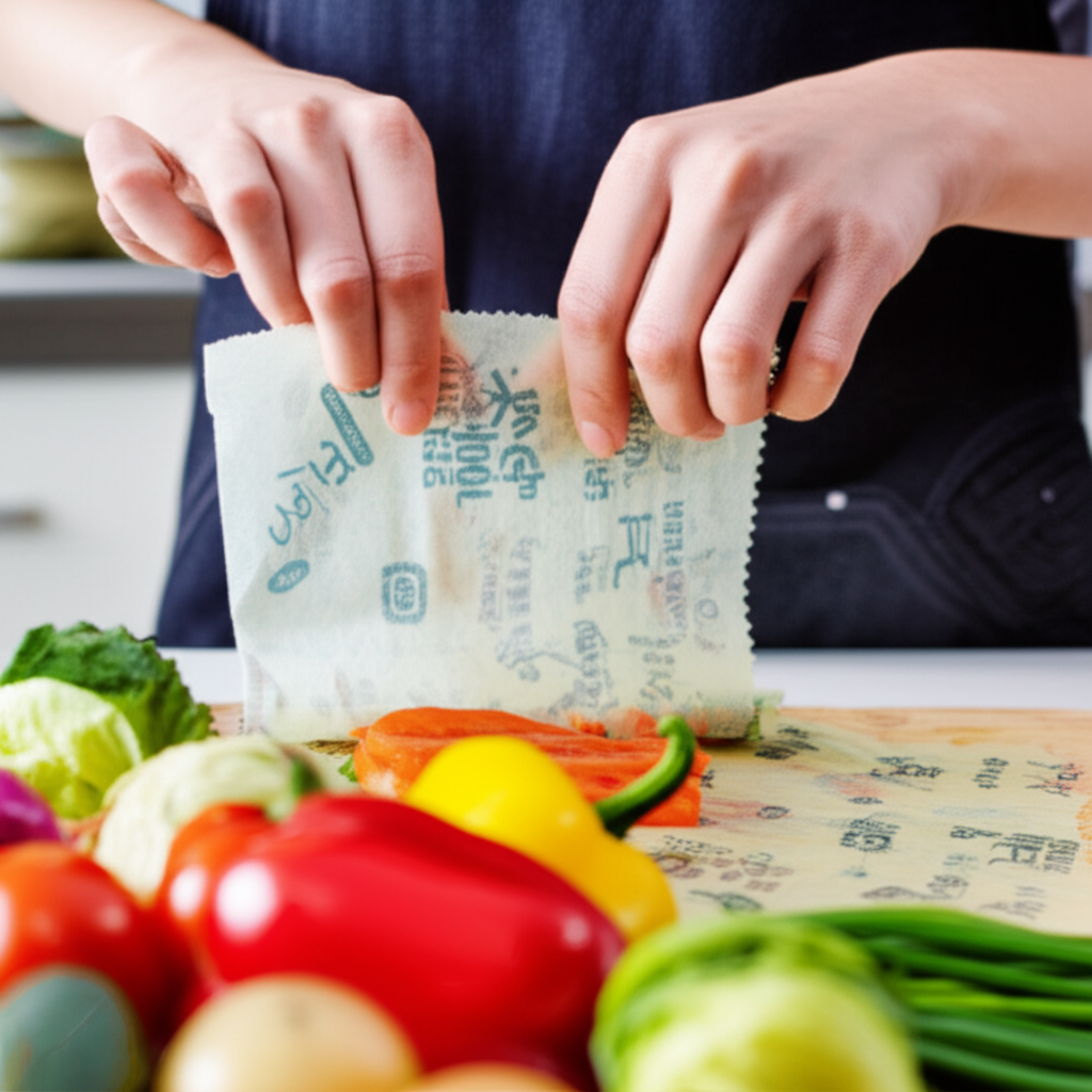 음식 포장 시 비닐 랩 대신 다회용 밀랍랩을 사용하세요. 자연 성분으로 만들어져 안심할 수 있으며, 세척 후 재사용이 가능합니다.