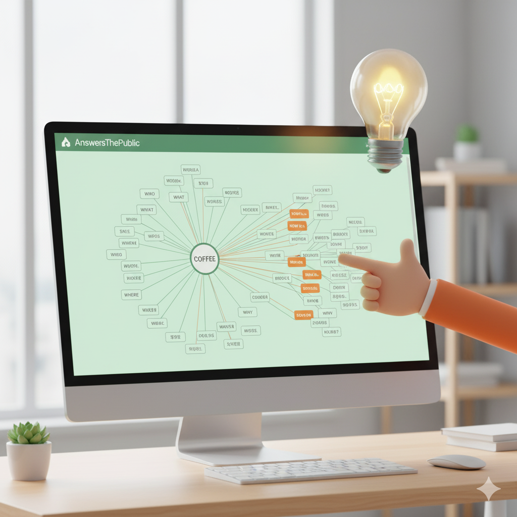 AnswersThePublic은 단순히 검색량이 많은 키워드를 찾는 것을 넘어, 사용자의 '질문 의도'를 파악하여 심층적인 콘텐츠 아이디어를 제공하는 강력한 도구입니다.