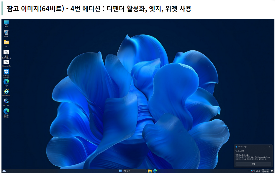 윈도우 설치는 4 가지 에디션(디펜더 및 위젯/엣지 사용유무)을 선택할 수 있고, 'TPM / 보안 부팅 / CPU 및 스트로지 검사' 우회 패치가 적용되었습니다.