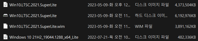 파일 리스트 중 맨 아래 19044.1288_x64_Lite 뼈대에 WIM 파일 추가하였습니다. 업로드는 위 3개만 하겠습니다.