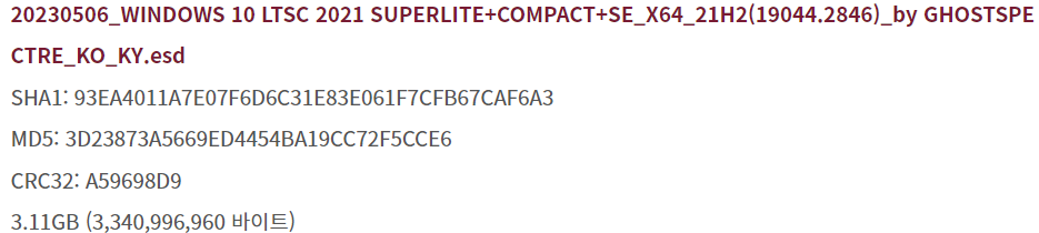 [펌]GHOST SPECTRE님 Windows 10.LTSC.2021.SuperLite 버전의 지역화 버전 기반 VHD/WIM/ISO 3종 통합버전 배포.윈도우 설치만 된 버전. "OldMac" 님이 한글화하신 GHOST SPECTRE님 Windows 10.LTSC.2021.SuperLite 버전
