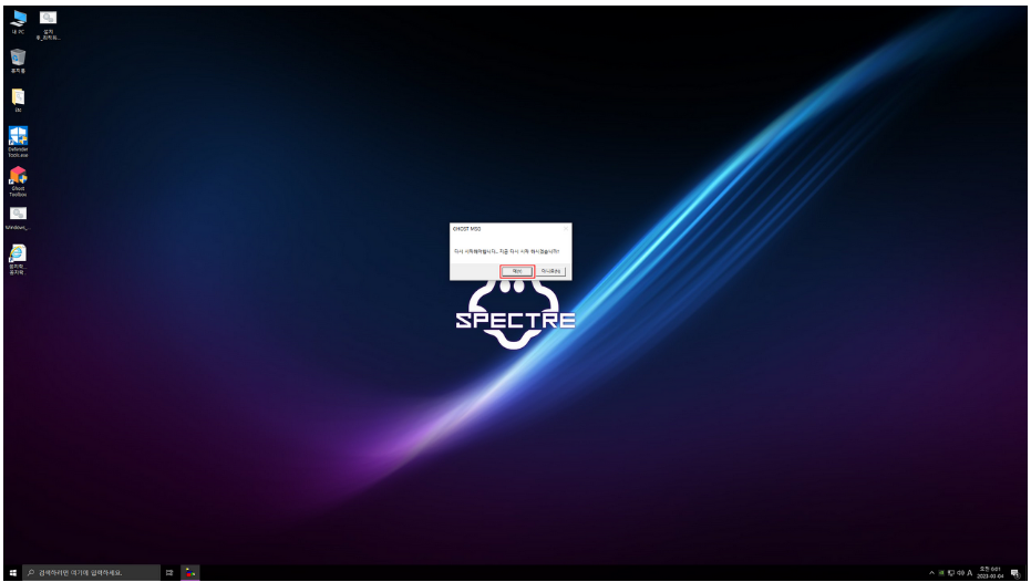 첫 바탕화면 진입 후 바로 제작자관련 각종 트윅 설정 및 프로그램들이 설치되니, 아무 작업도 하지 않고 기다리다가 재부팅 메시지 창이 나오면 재부팅하여 사용하시면 됩니다.