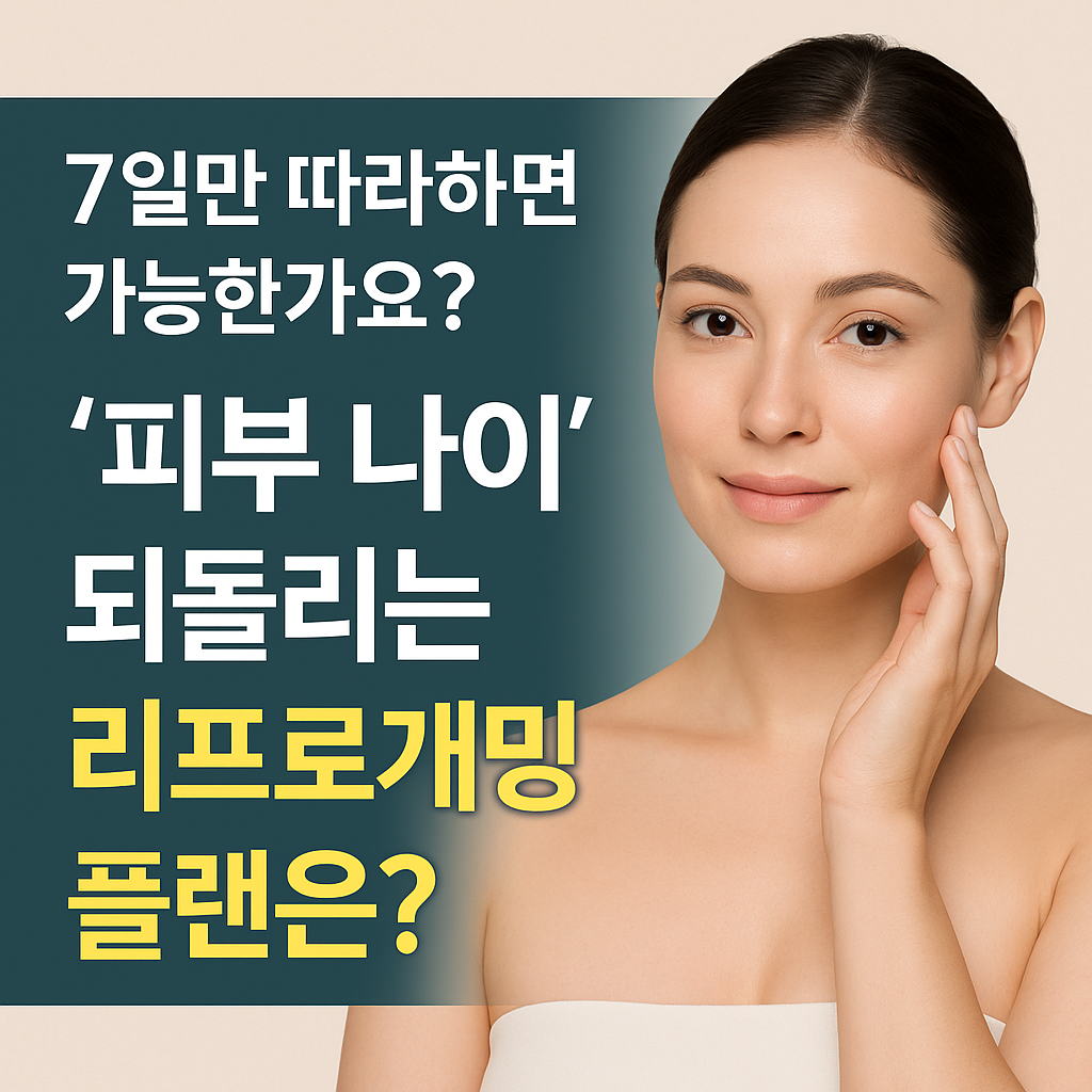 많은 분들이 피부 나이(Skin Age)와 실제 나이 사이의 괴리를 느껴본 적 있으시죠? 최근 연구에 따르면 피부 나이는 실제 나이보다 훨씬 더 빠르게 진행될 수 있다고 해요. 그래서 등장한 것이 바로 ‘7일 리프로그래밍 플랜’입니다. 이 플랜은 피부 장벽 강화, 콜라겐 회복, 탄력 상승, 수분 대사 개선을 단기간에 노리는 집중 루틴이에요.