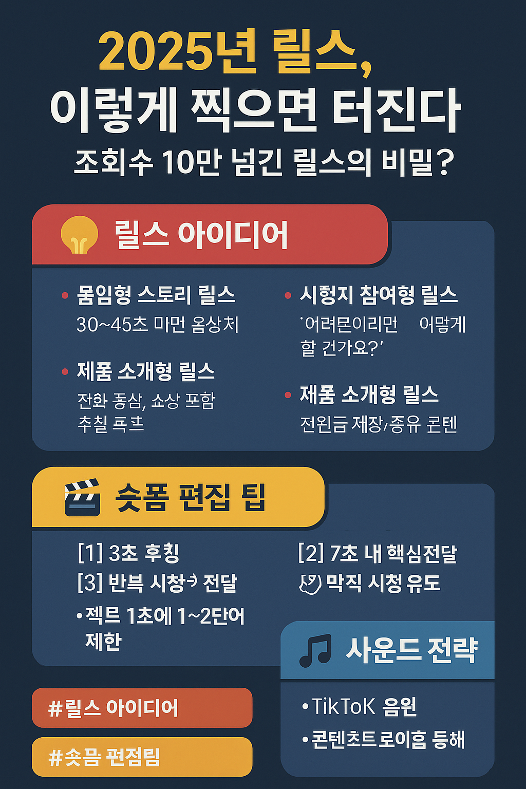 #릴스아이디어 #2025릴스전략 #릴스편집팁 #숏폼제작 #릴스사운드 #조회수늘리기 #인스타릴스