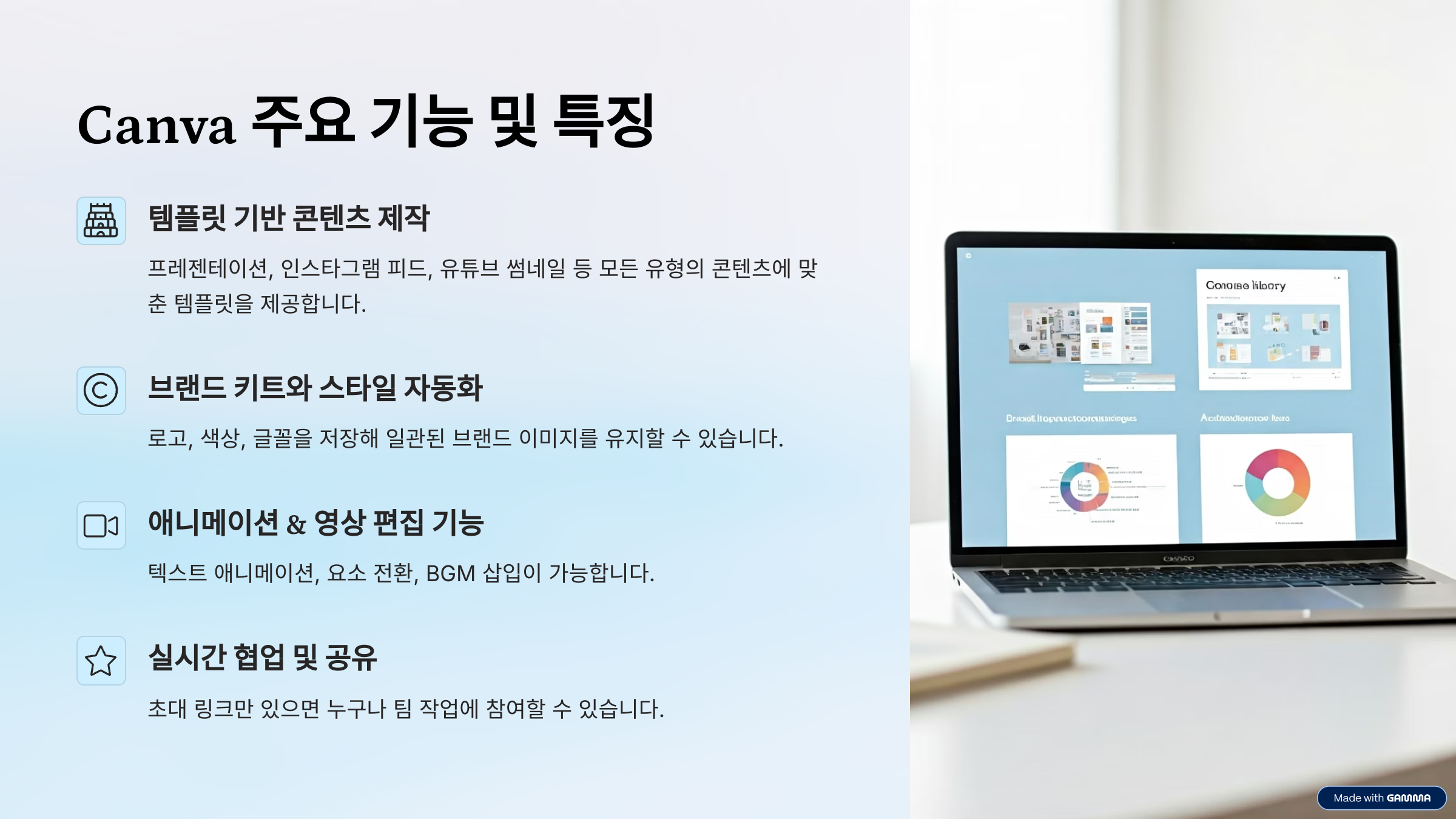 Canva는 디자인 경험이 없어도 콘텐츠를 만드는 데 강력한 힘을 주는 도구입니다.