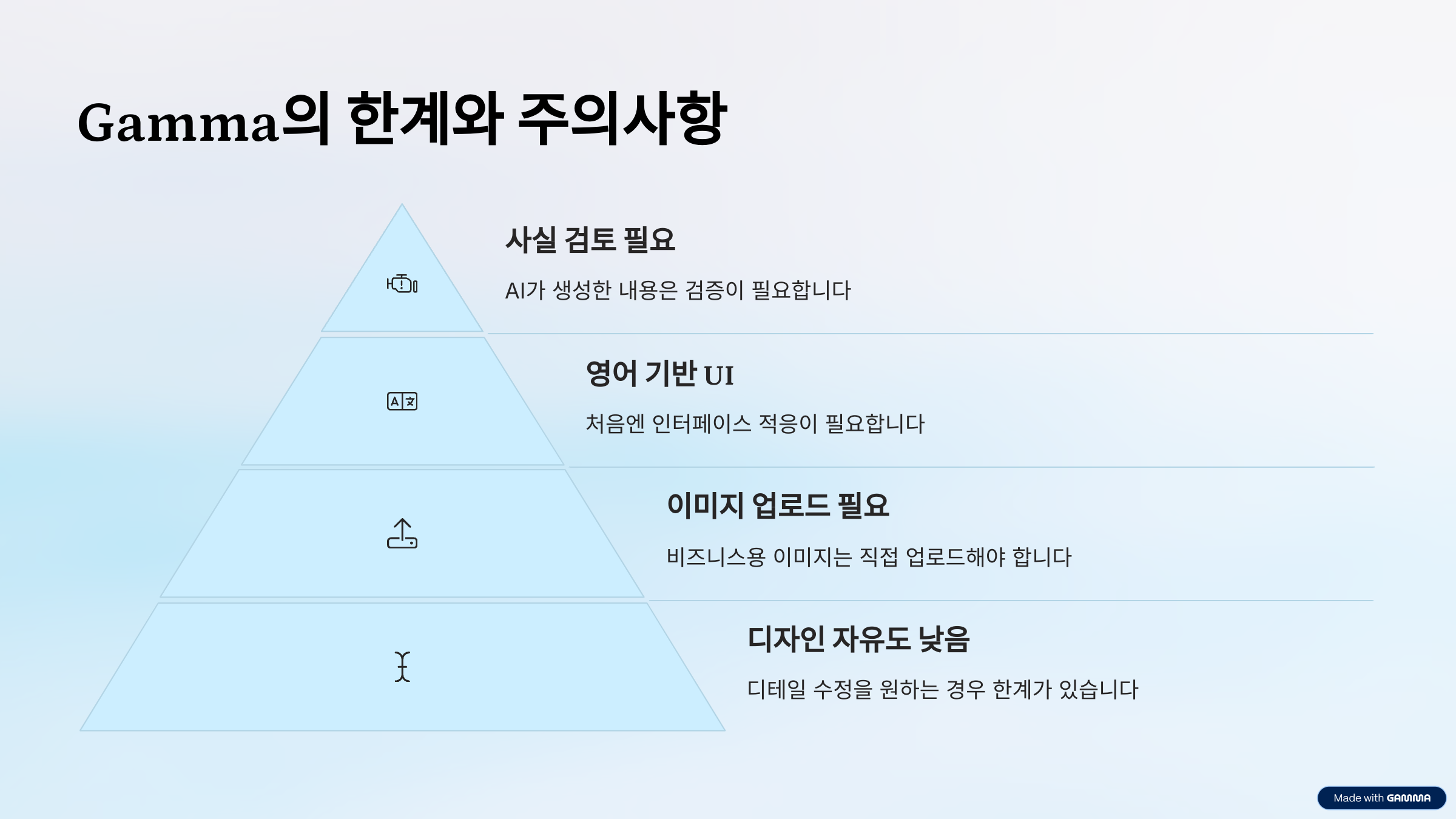 이번 글에서는 Gamma의 실제 사용법, 장단점, 추천 활용법까지 모두 알려드립니다.