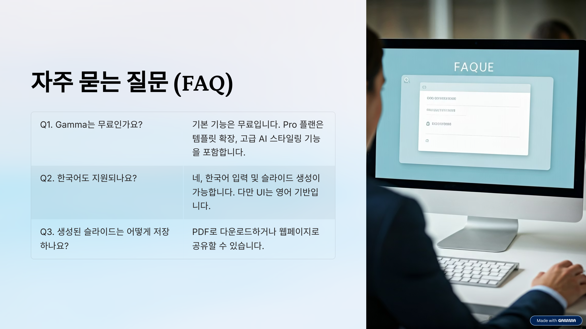- 지금 Gamma 무료 계정을 생성하고 프레젠테이션을 자동으로 만들어보세요!