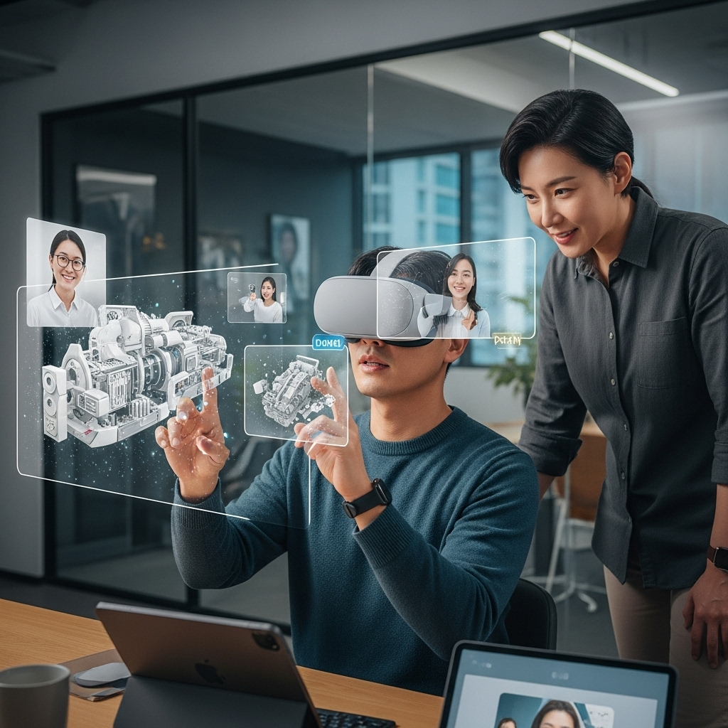 원격 회의 시 실제 같은 아바타와 3D 모델을 활용하여 보다 효율적이고 몰입감 있는 소통이 가능해집니다.