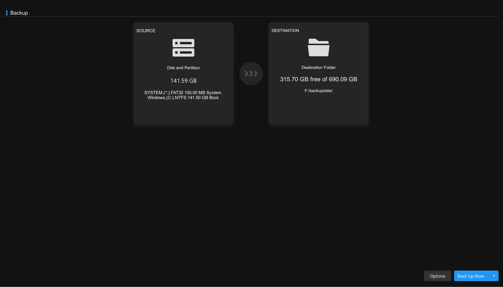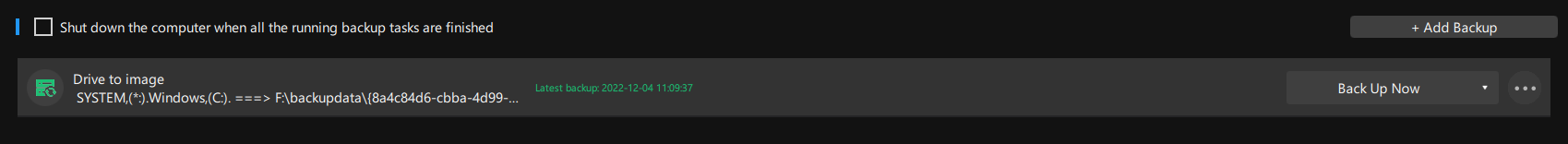 다운로드 후 크랙파일을 설치된 폴더에 복사해 준 후 실행해 주면 "Backup" 메뉴가 자동으로 뜹니다. 자동으로 여유공간이 있는 드라이브를 찾아서 "BackupData" 폴더가 생성된다고 나옵니다.