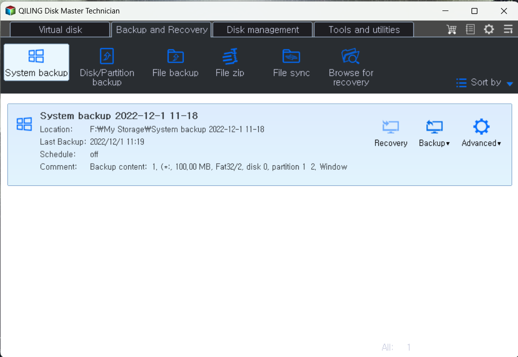 상단 메뉴의 "Backup And Recovery" 메뉴에서 "System Backup" 메뉴 선택해주면 설치된 시스템을 통째로