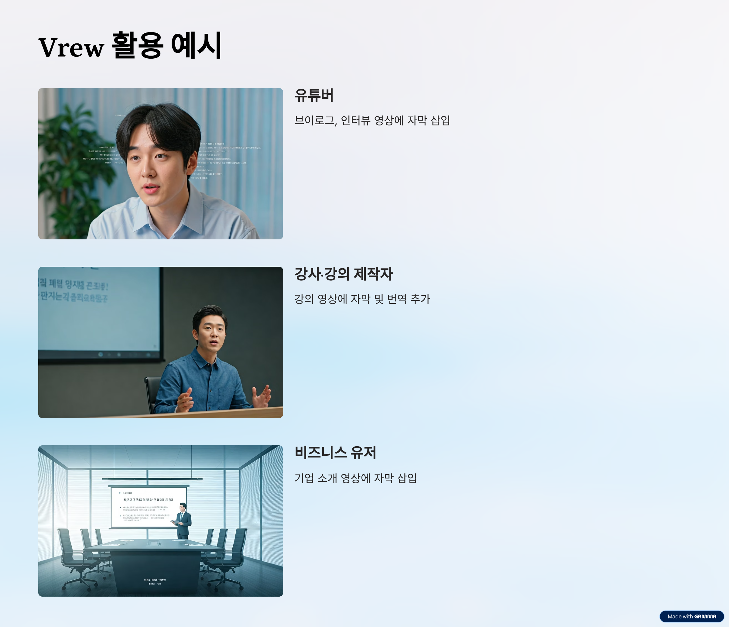 - 비즈니스 유저: 기업 소개 영상에 자막 삽입