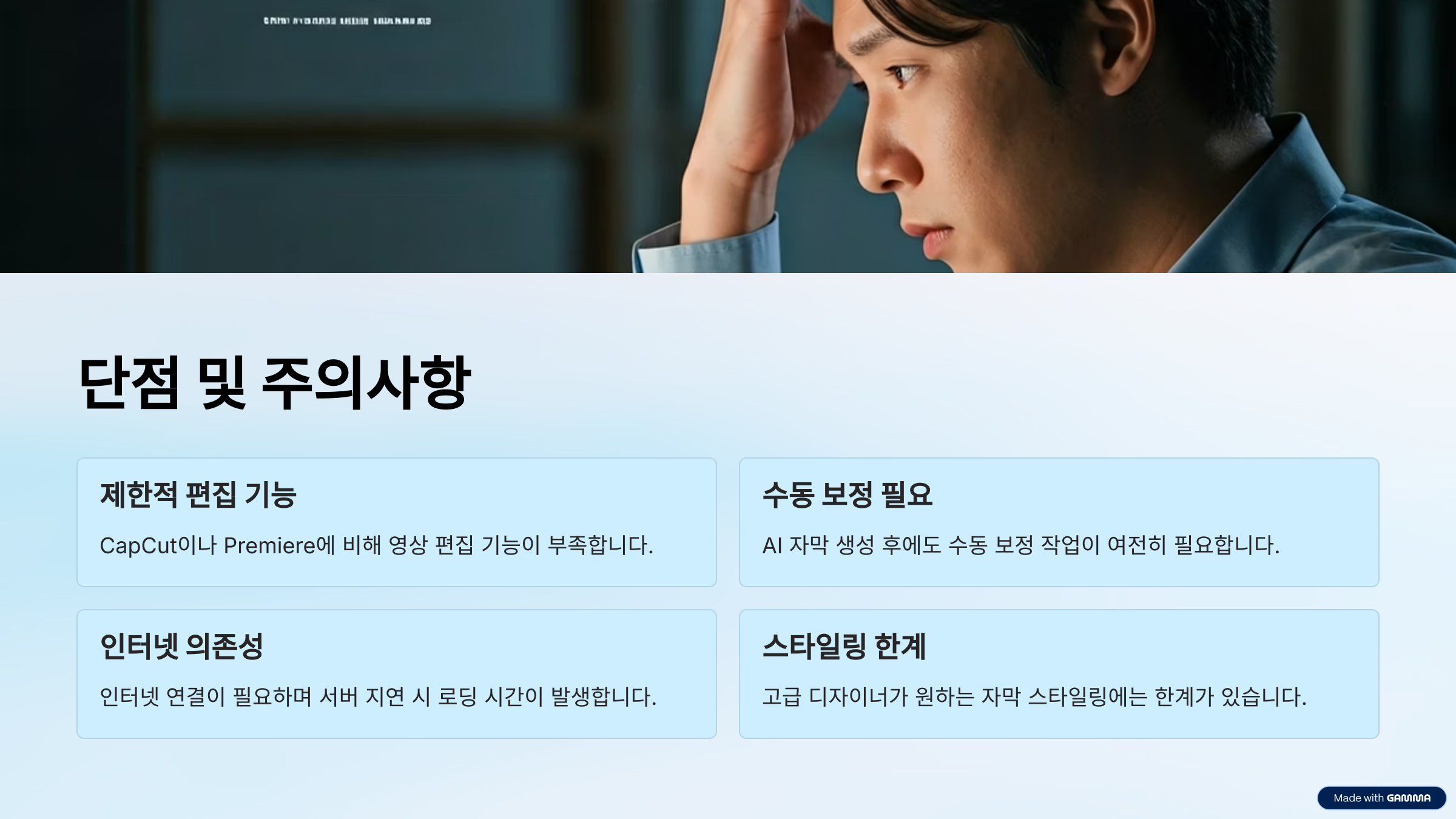 - AI 자막 생성 후 수동 보정은 여전히 필요