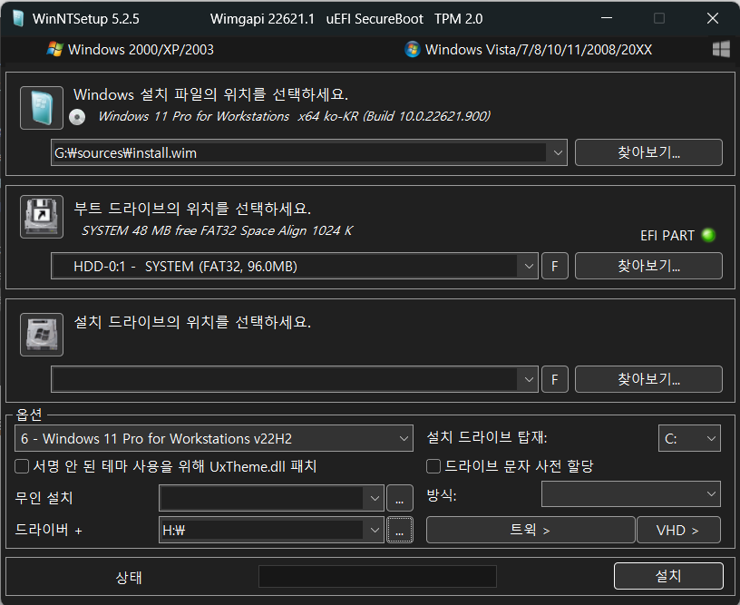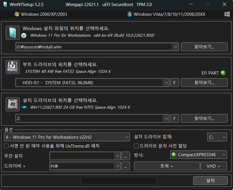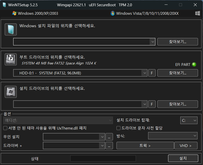 WinNtSetup 사용하여 윈도우 설치용 VHD(가상 드라이브 파일) 만들기
