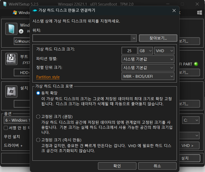 WinNtSetup 사용하여 윈도우 설치용 VHD(가상 드라이브 파일) 만들기