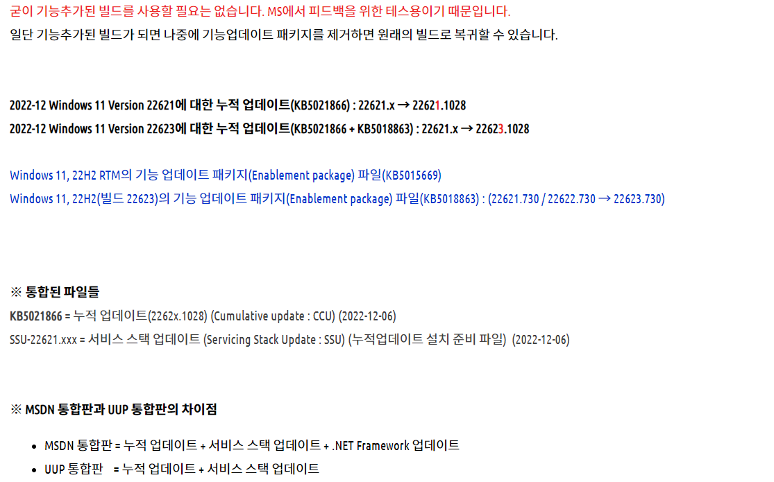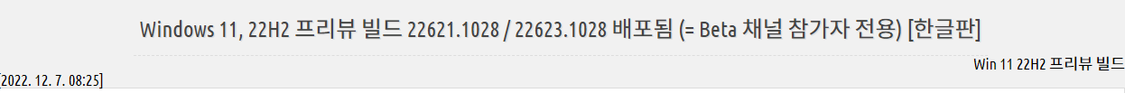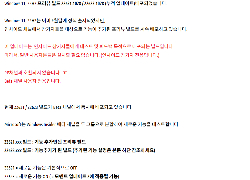 Windows 11, 22H2 프리뷰 빌드 22621.1028 / 22623.1028 배포됨 (= Beta 채널 참가자 전용) [한글판]