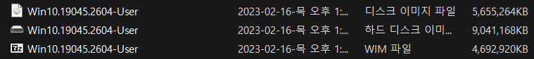 2. Win10.19045.2604-User.WIM 파일은 1번 19045.2604-User.VHD 에서 추출한 WIM 파일입니다.