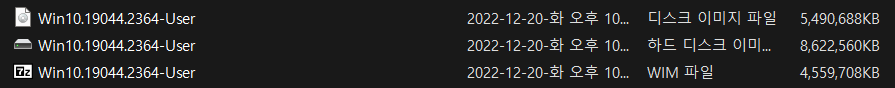 2. Win10.2XH2.19044.2364.x64-User.WIM 파일은 1번 User.VHD 에서 추출한 WIM 파일입니다.