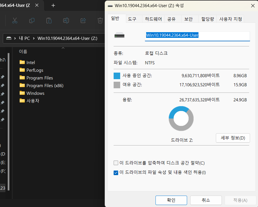 3. Win10.2XH2.19044.2364.x64-User.ISO 파일은 2번에서 추출한 WIM 파일을 통합하여 적용된 ISO 파일입니다.