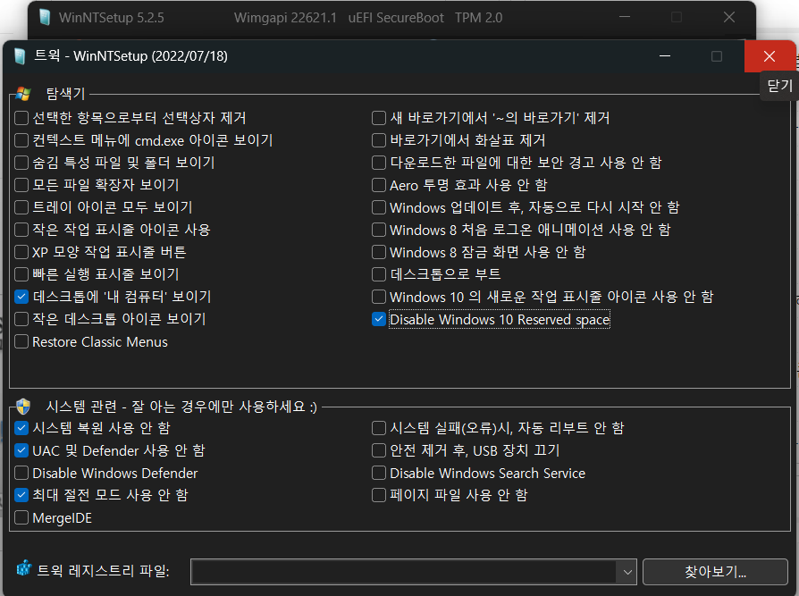 제가 기존에 업하여 올리던 VHD/ISO/WIM 파일 3종 작업 완료해 놓았고, 오늘 중에 원드라이브 업로드하고, 링크 올리겠습니다. 이 버전은 디펜더 활성화 되어 있습니다. 정품인증 되어있고, Cortana 삭제되어있고, 우클릭 제어판 활성화 되어 있고, 기본 프로그램 몇 개 삭제하였습니다.