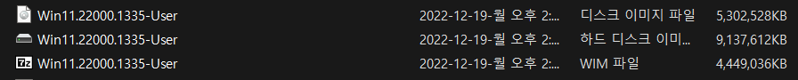 2. Win11.21H2.22000.1335-User.WIM 파일은 1번 User.VHD 에서 추출한 WIM 파일입니다.