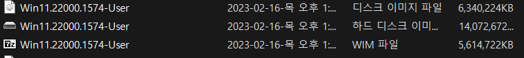2. Win11.22000.1574-User.WIM 파일은 1번 22000.1574-User.VHD 에서 추출한 WIM 파일입니다.