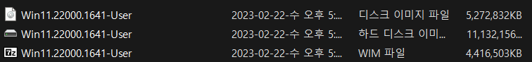2. Win11.22000.1641-User.WIM 파일은 1번 22000.1641-User.VHD 에서 추출한 WIM 파일입니다.