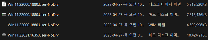 2. Win11.22000.1880.User-NoDrv.WIM 파일은 1번 22000.1880.User-NoDrv.VHD 에서 추출한 WIM 파일입니다.