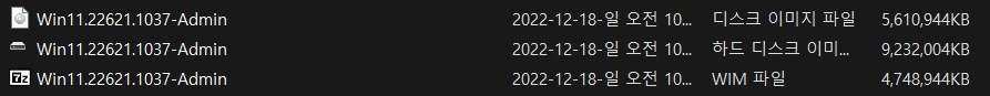 2. Win11.22621.1037-Admin.WIM 파일은 1번 1037-Admin.VHD 에서 추출한 WIM 파일입니다.