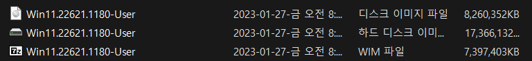 2. Win11.22621.1180-User.WIM 파일은 1번 22621.1180-User.VHD 에서 추출한 WIM 파일입니다.