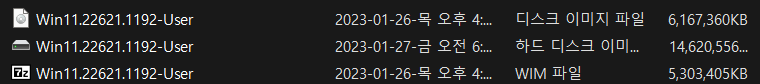 2. Win11.22621.1192-User.WIM 파일은 1번 22621.1192-User.VHD 에서 추출한 WIM 파일입니다.