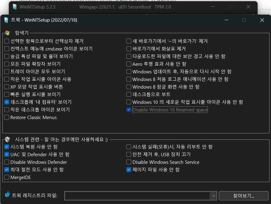 3. Win11.22621.1192-User.ISO 파일은 2번에서 추출한 WIM 파일을 통합하여 적용된 ISO 파일입니다.