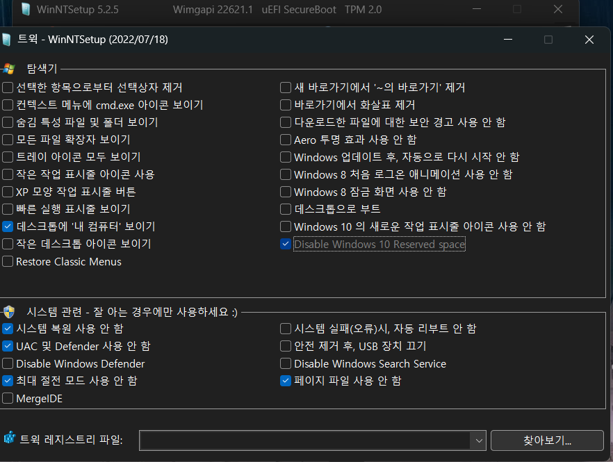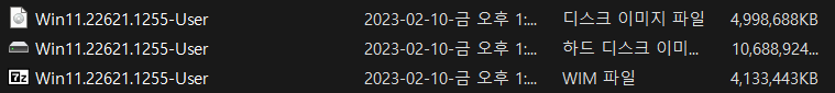 2. Win11.22621.1255-User.WIM 파일은 1번 22621.1255-User.VHD 에서 추출한 WIM 파일입니다.