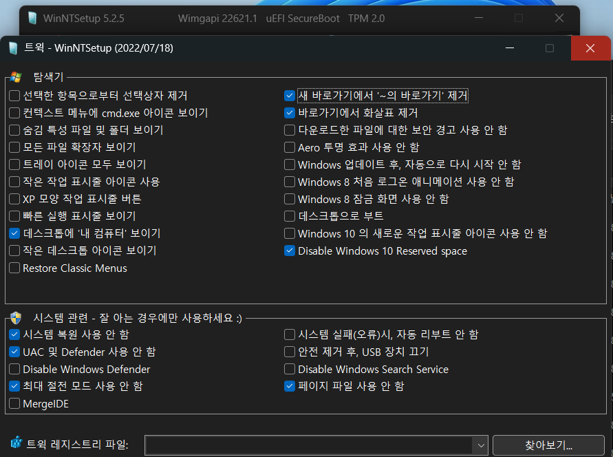 이 버전은 디펜더 활성화 되어 있습니다. TPM-PASS 패치 및 정품인증 되어있고, OneDrive 및 Cortana 삭제되어있고,