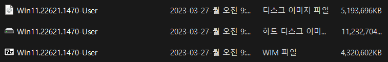 2. Win11.22621.1470-User.WIM 파일은 1번 22621.1470-User.VHD 에서 추출한 WIM 파일입니다.