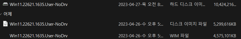 2. Win11.22621.1635.Uset-NoDrv.WIM 파일은 1번 22621.1635.User-NoDrv.VHD 에서 추출한 WIM 파일입니다.