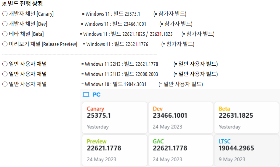 이 빌드는 Windows 11, 22H2 모멘트 업데이트 3 (Moment Update 3) 테스트 빌드입니다.