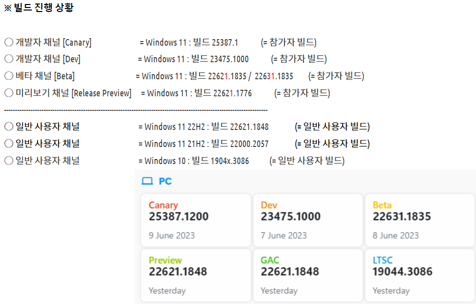 이 빌드는 Windows 11, 22H2 6월 일반 사용자용 업데이트 입니다.