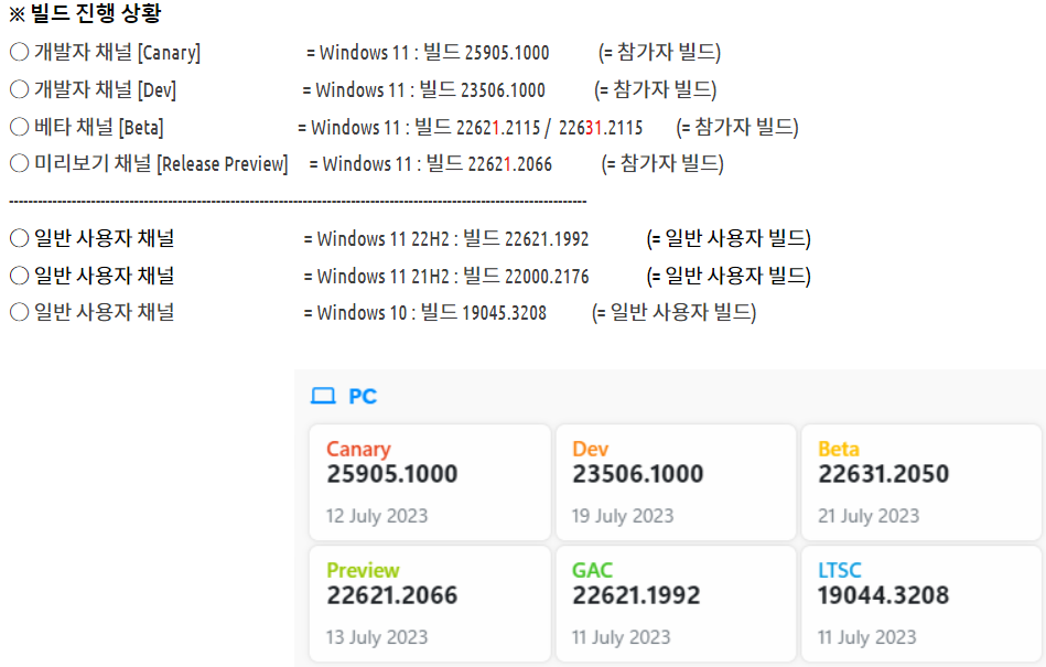 이 업데이트는 인사이드 참가자들에게 테스트 및 피드백 목적으로 배포되는 빌드입니다.