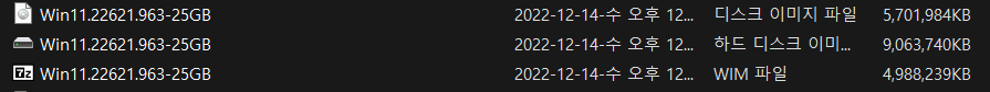 2. Win11.22621.963-25GB.WIM 파일은 1번 25GB.VHD 에서 추출한 WIM 파일입니다.